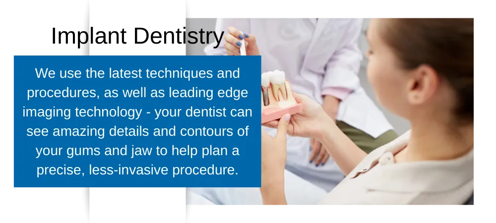We use the latest techniques and procedures, and we also use leading edge imaging technology - your dentist can see amazing details and contours of your gums and jaw to help plan a precise, less-invasive procedure.